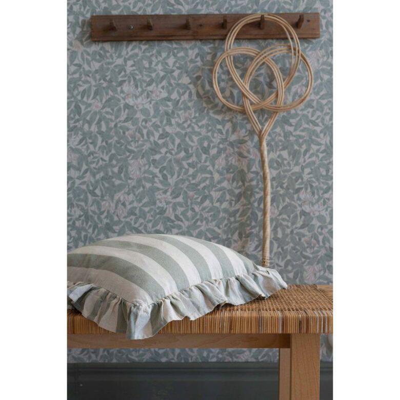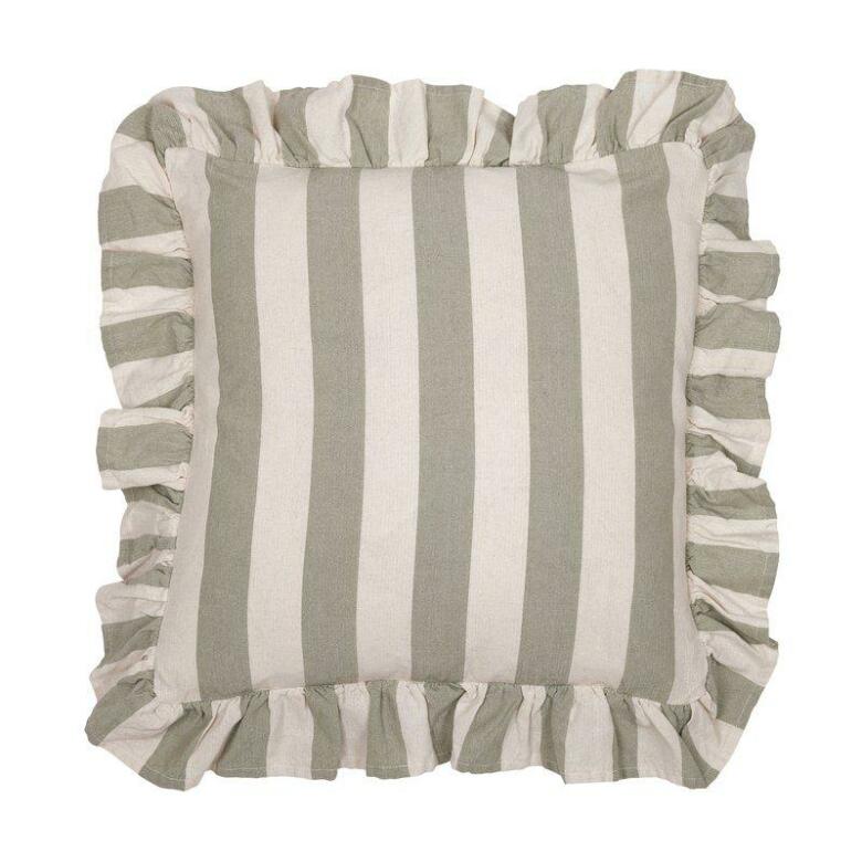 Ljuvligt kuddfodral med blockrand och härlig volang. Tillverkad av återvunna material | Från Fondaco