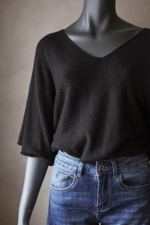 Finstickad tröja i mjukt material med kort ärm | Från Soulful Fashion