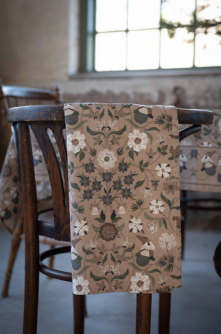 Julig kökshandduk till köket med vackert mönster i dova toner med inslag av grönt | Från Fondaco