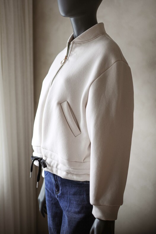 Snygg collagejacka i mjukt material med dragkedja och knyte | Från Soulful Fashion