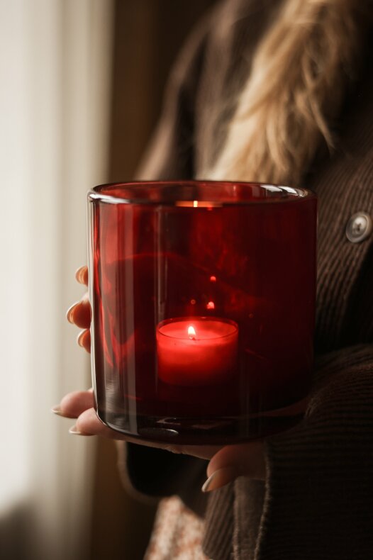 En elegant ljuslykta i en härlig röd färg. Perfekt att tända nu under vinterns mysiga kvällar | Från Olsson & Jensen