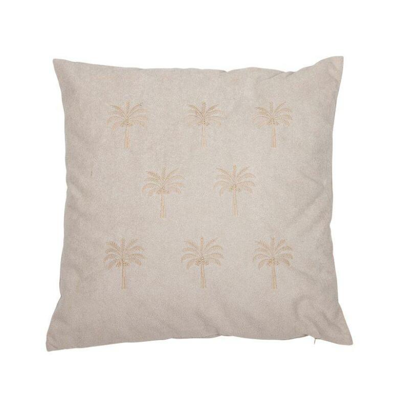 Kuddfodral med palmmotiv i mockaimitation har en lyxig och avslappnad känsla som för tankarna till tropisk elegans. | Från Fondaco