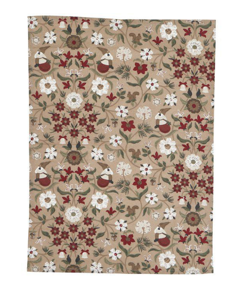 Julig kökshandduk till köket med vackert mönster i dova toner med inslag av rött | Från Fondaco