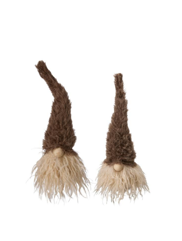 Söt tomte i textil i jordnära färger med mjukt skägg, perfekt att dekorera med på hyllan, fönsterbrädan eller i bokhyllan under julen för extra julstämning | Från wikholmform