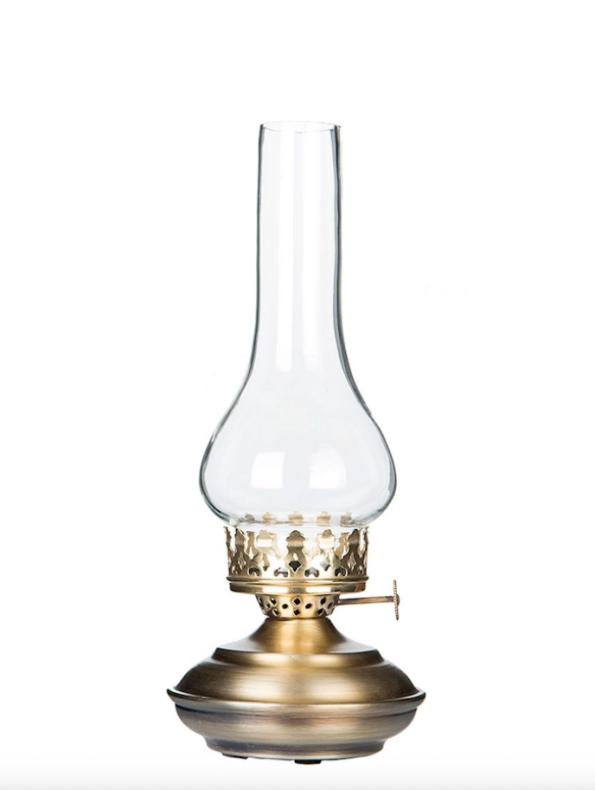 Underbar ljuslykta för värmejus i i antik mässing som påminner om en fotogenlampa | Från Alot decorations
