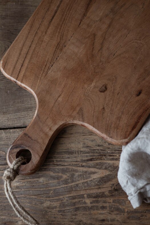 Rund skärbräda i massivt trä med praktiskt handtag och upphängningssnöre | Från Wikholmform