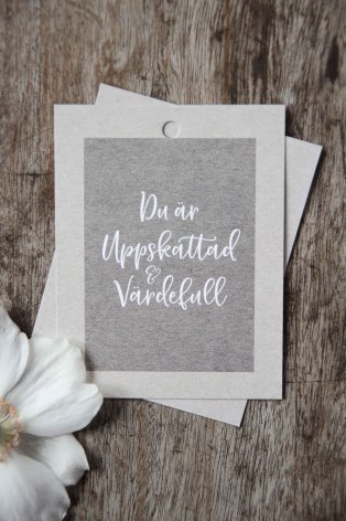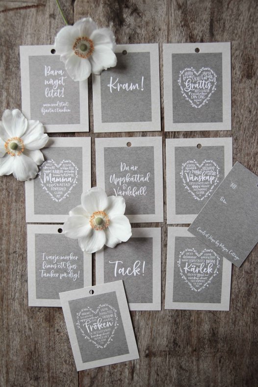 Strl 7 x 9 cm | 200 grams obestruket papper med hål för snöre & band