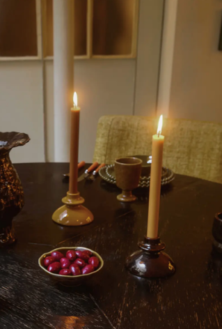 Snygg chunky ljusstake inspirerad av 70-talets retrofärger, glaserad med reaktiv glasyr som skapar unika variationer i färg och täckning | Från Olsson & Jensen