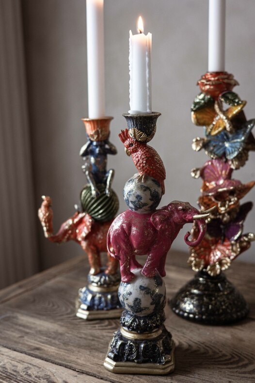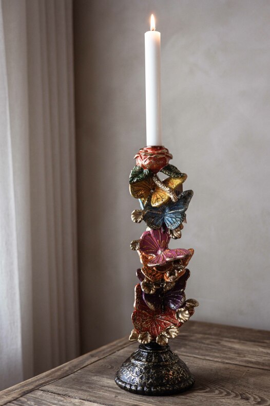 nred med levande ljus med en fin ljusstake dekorerad med fjärilar | Från A Lot Decoration