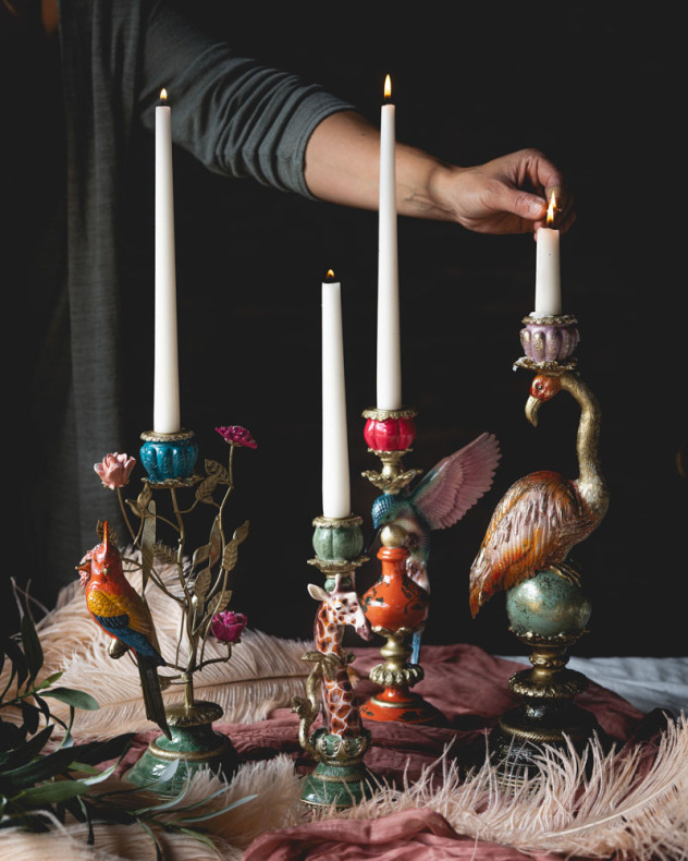 Inred med levande ljus med en härlig ljusstake med en kolibri | Från A Lot Decoration
