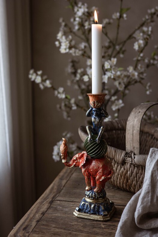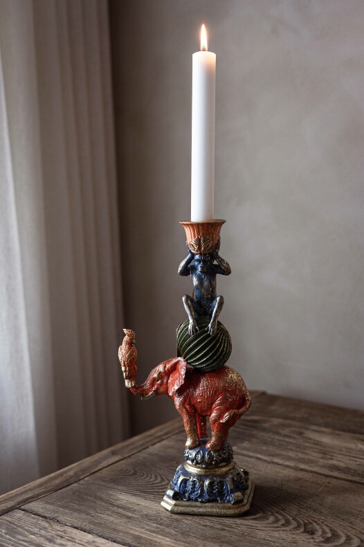 Ljusstake med en elefant, en apa och en fågel. Ett fint sätt att få in levande ljus i inredningen. | Från A Lot Decoration