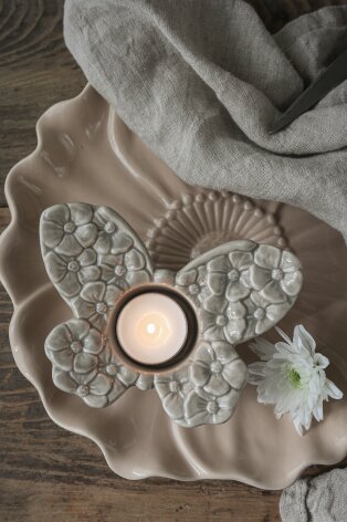 Majas Blomstra Fjäril för värmeljus Mussla