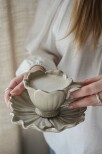 Matcha med fat och ljusstakar samt små söta skålar i samma blommande känsla.