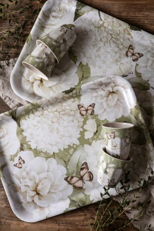 Majas Bricka Hortensia & Butterflies Grön