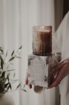 Vacker rustik ljuslykta i glas med chestnut finish, fin att använda som vanlig lykta när vaxet brunnit ut
