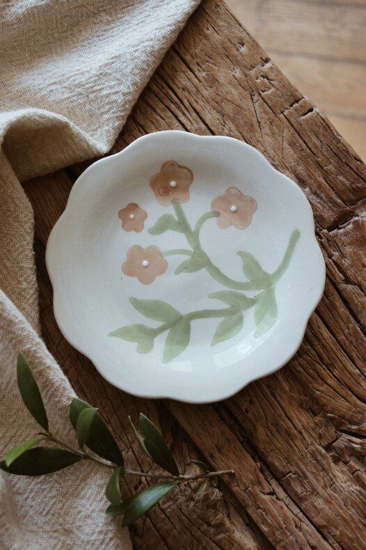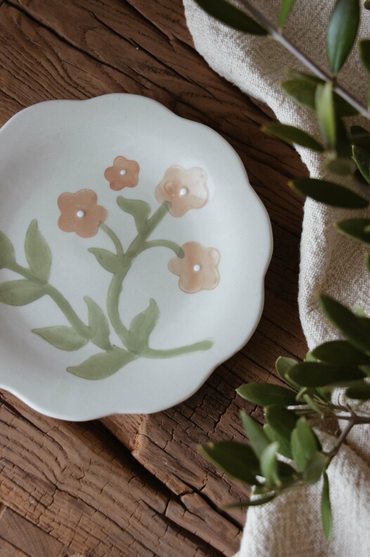 Ljuvligt fat med handmålat mönster i glada härliga färger