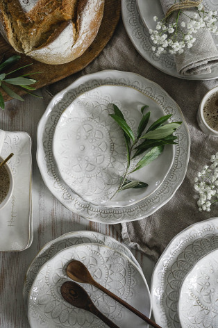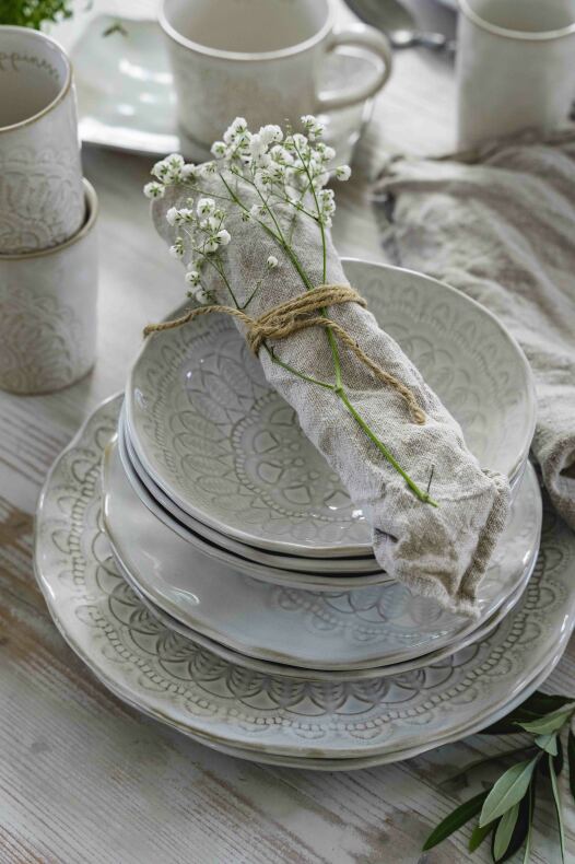Vår handgjorda stengods serie med präglat mönster i vacker levande finish.