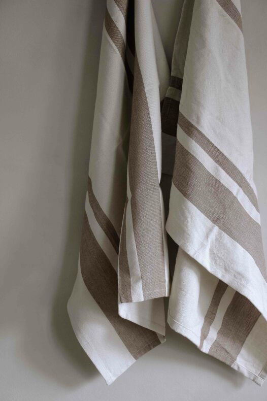 100% vävd fin bomullskvalitet med mysiga färger av Sand och Kanel