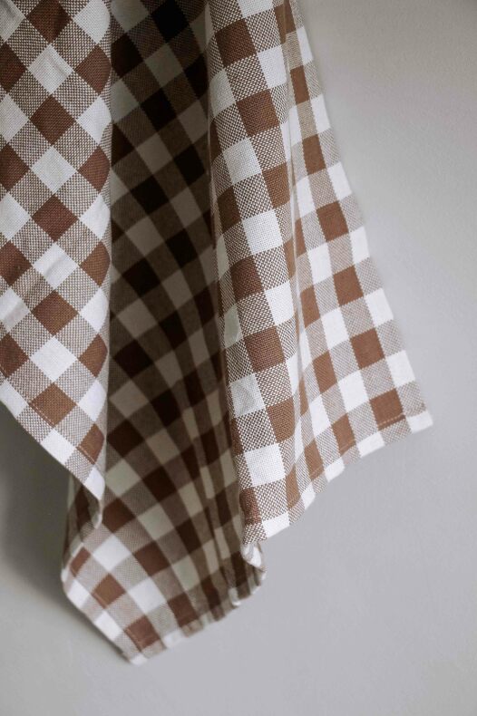 100% vävd fin bomullskvalitet med mysiga färger av Sand och Kanel