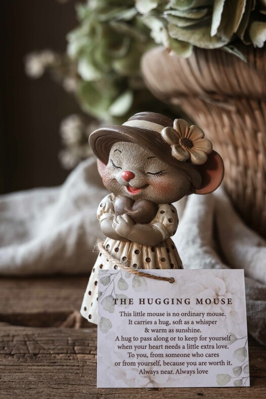 Text: Den här lilla musen är ingen vanlig mus. Den bär på en kram, mjuk som en viskning & varm som solsken. En kram att ge vidare eller att spara när du själv behöver lite extra kärlek. Till dig, från någon som bryr sig eller frin dig själv, för att du är värd det. Alltid nära. Alltid kärlek / This little mouse is no ordinary mouse. It carries a hug, soft as whisper & warm as sunshine. A hug to pass along or to keep for yourself when your heart needs a little extra love. To you, from someone who cares or from yourself, because you are worth it. Always near. Always love