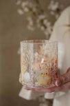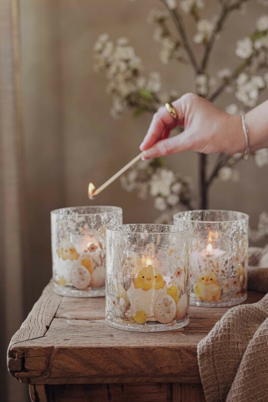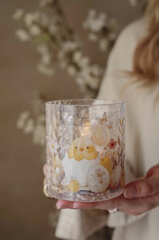 Finish Handgjord krackelerad glaslykta med mönster av påskens söta kycklingar och blommor