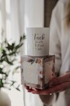 Strl 7x8 cm med tillhörande gåvobox i fint mönter och med samma text som lyktan