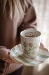 Ljuvlig mugg med handmålat mönster i glada härliga färger