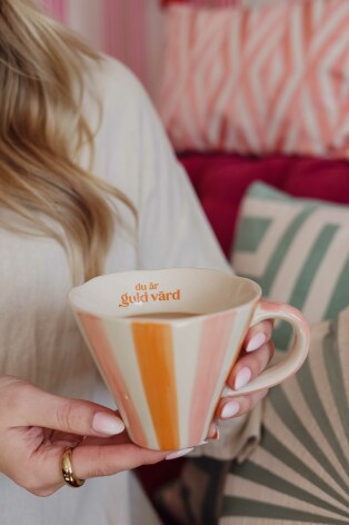 Ljuvlig mugg med handmålat mönster i glada härliga färger