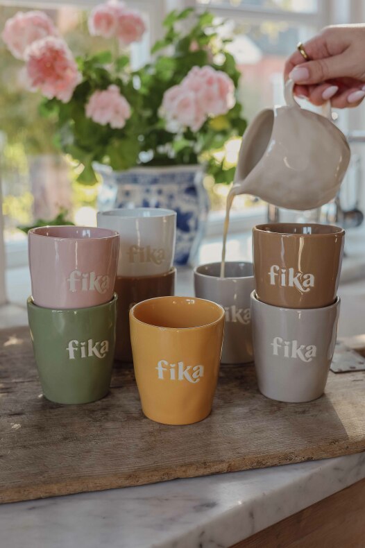 Ljuvliga muggar i fina basfärger med silkscreen text i keramiken