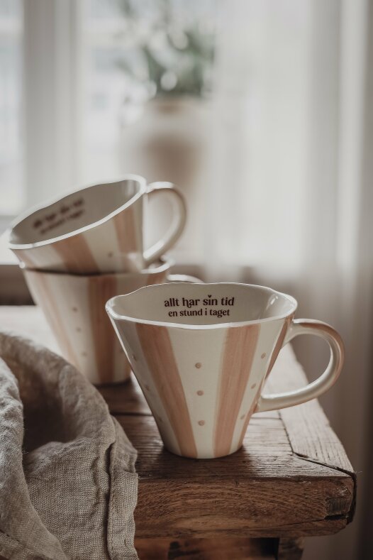 Ljuvlig mugg med handmålat mönster i glada härliga färger