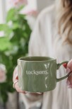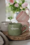 Ljuvlig mugg med organisk handgjord känsla och silkscreen text i keramiken.