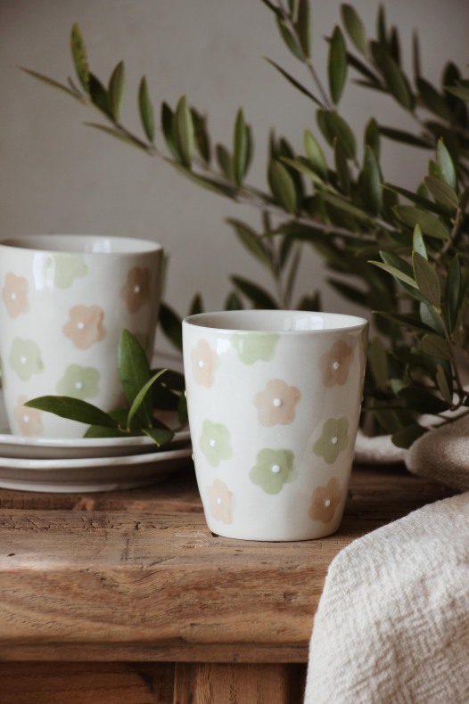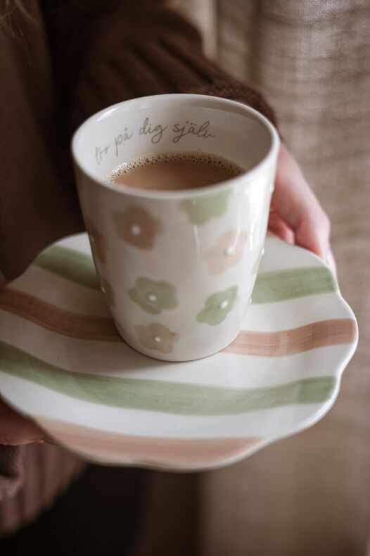 Ljuvlig mugg med handmålat mönster i glada härliga färger