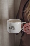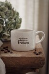 Ljuvlig mugg med organisk handgjord känsla och silkscreen text i keramiken.