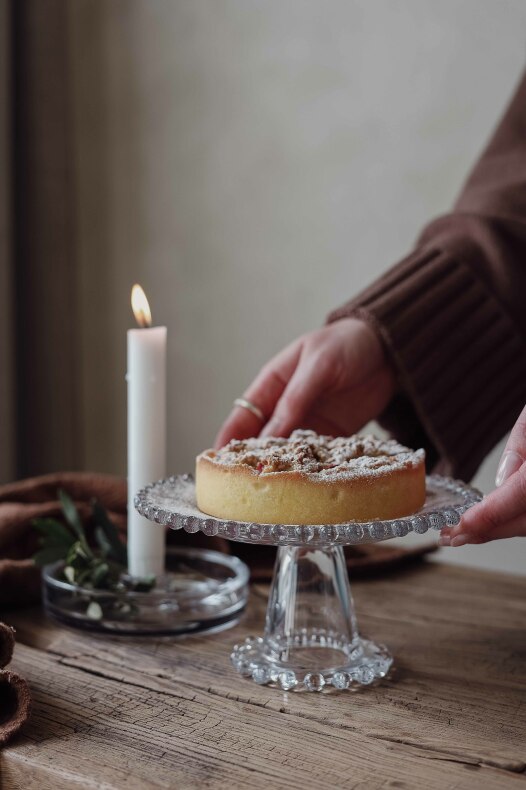 Stilrent fat på fot i klarglas med söta detaljer, fint att servera kakor och godsaker på samt använda som ljusfat för blockljus.