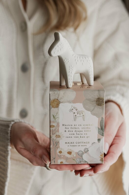 Text: Hästen är en symbol för frihet, styrka & den djupa tillit som bara en sann vän kan ge / A horse stands for freedom, strength, & the deep trust that only a true friend can give.