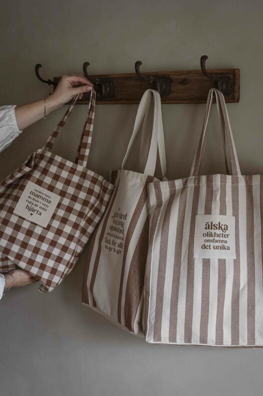 Majas tygpåsar passar perfekt i vardagen – till shopping, utflykter, jobb, strand eller som gåvopåse, samtidigt som de är en del av vårt arbete för Hjärnfonden där vi älskar olikheter och omfamnar det unika.