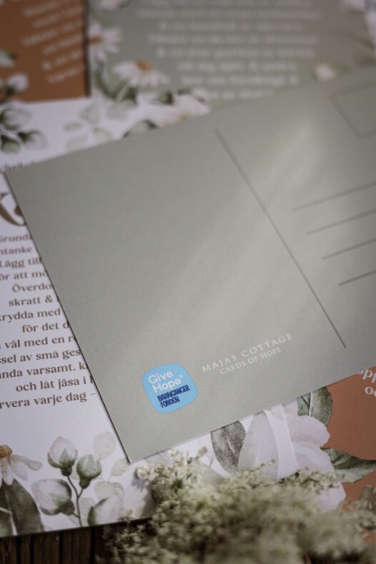 Majas Vykort är framtagna med stor omsorg för att skänka hopp, glädje och tröst i kampen mot barncancer.
