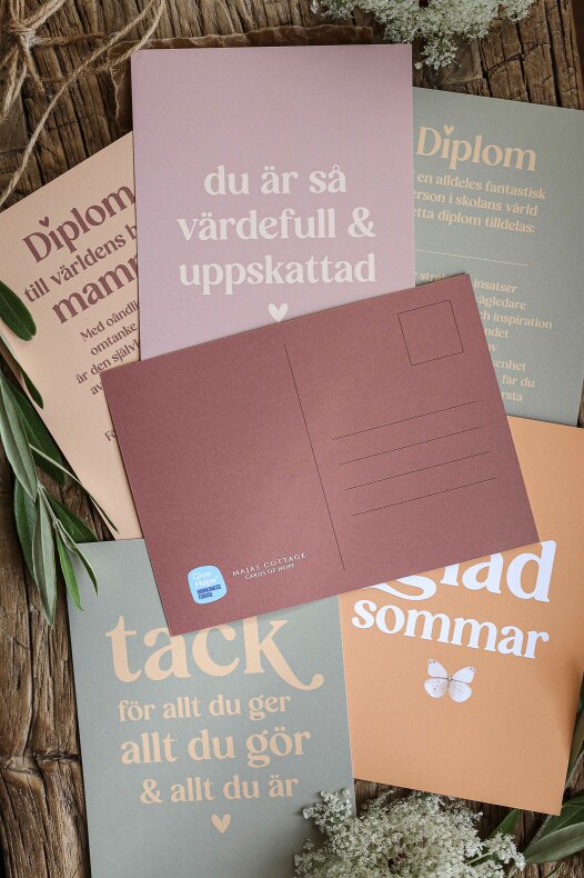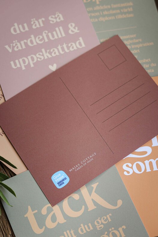 Majas Vykort är framtagna med stor omsorg för att skänka hopp, glädje och tröst i kampen mot barncancer.