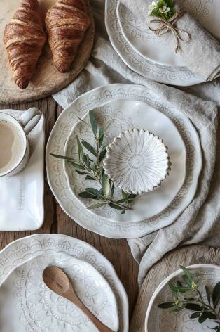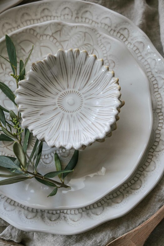 Vår handgjorda stengods serie med präglat mönster i vacker levande finish.