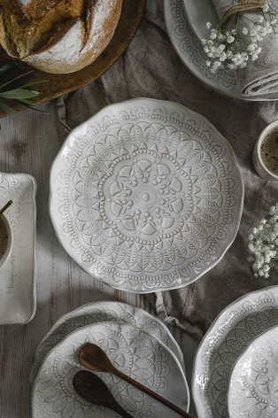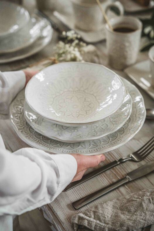 Vår handgjorda stengods serie med präglat mönster i vacker levande finish.
