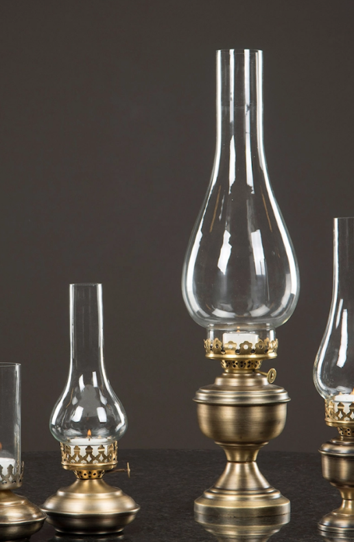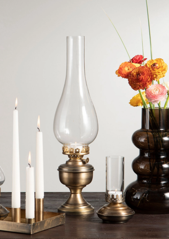 Underbar ljuslykta för värmejus i i antik mässing som påminner om en fotogenlampa | Från Alot decorations
